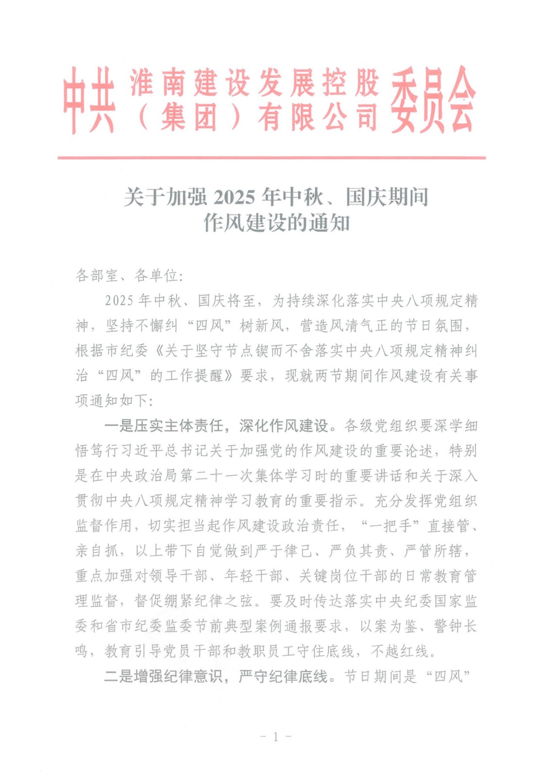 關(guān)于加強2025年中秋、國慶期間 作風(fēng)建設(shè)的通知